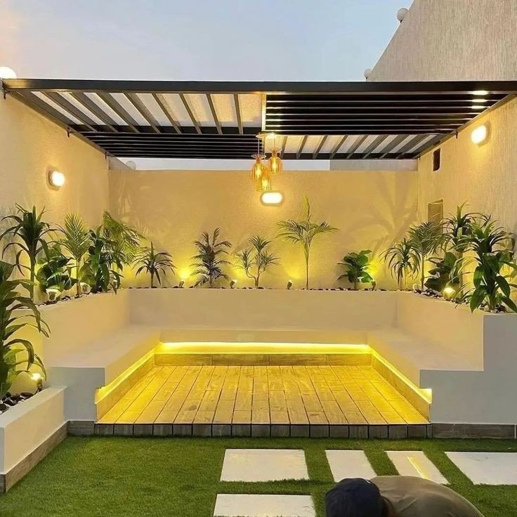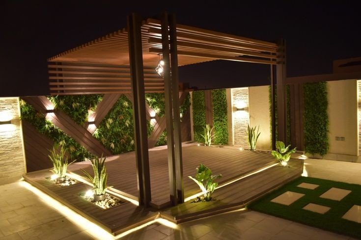 استخدام إضاءة مناسبة لإبراز جمال الحديقة ليلاً.