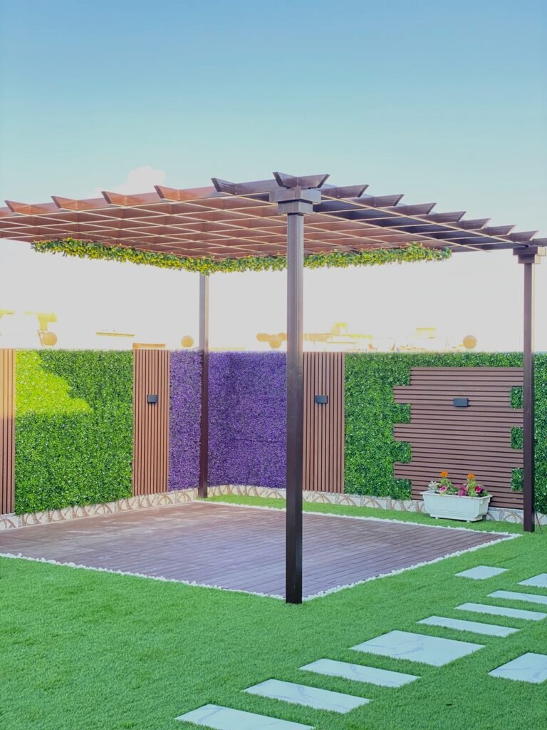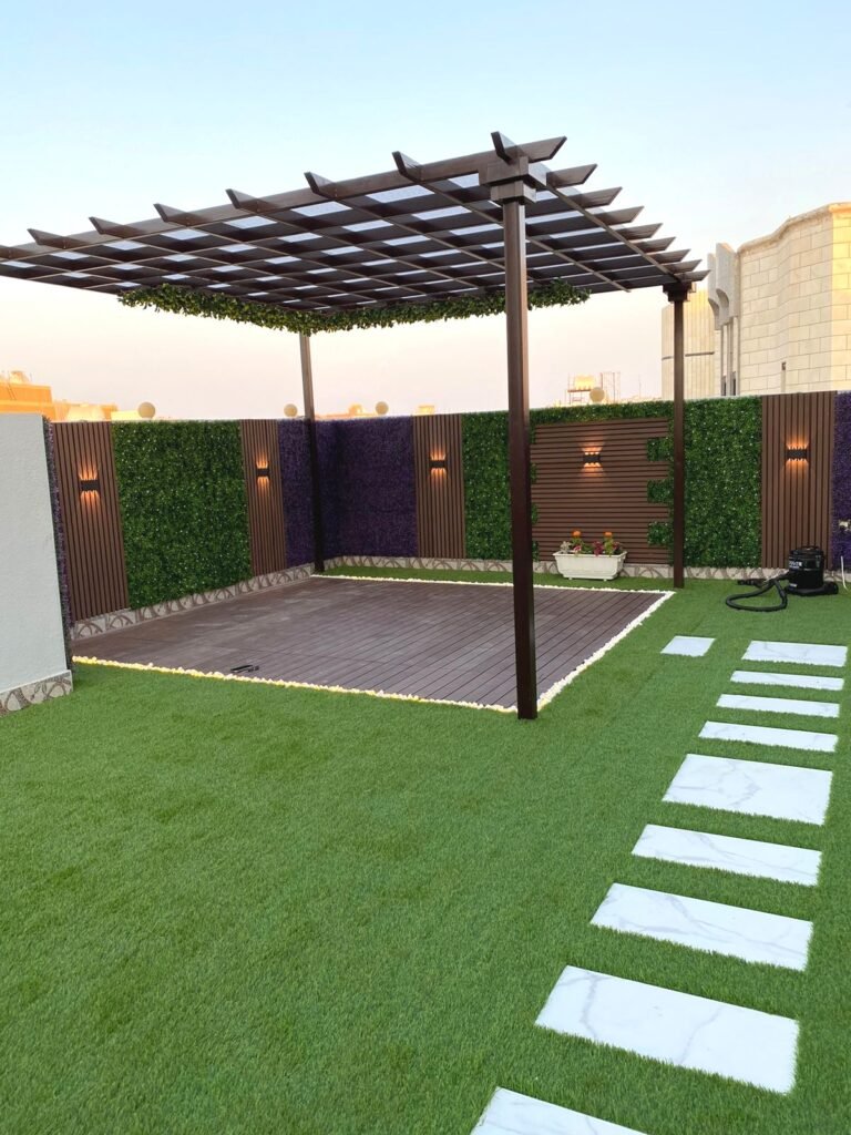 نحرص على اختيار المواد المقاومة لأشعة الشمس والحرارة العالية، مع تنفيذ احترافي يضمن الثبات وطول العمر الافتراضي. كما نوفّر خيارات متعددة من الألوان والأشكال لتناسب ذوق العميل وتكمل تنسيق الحديقة بشكل أنيق وعملي.